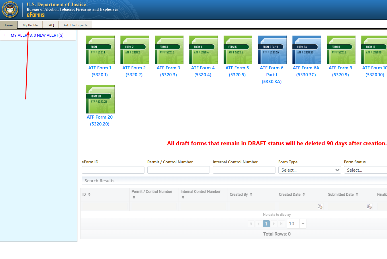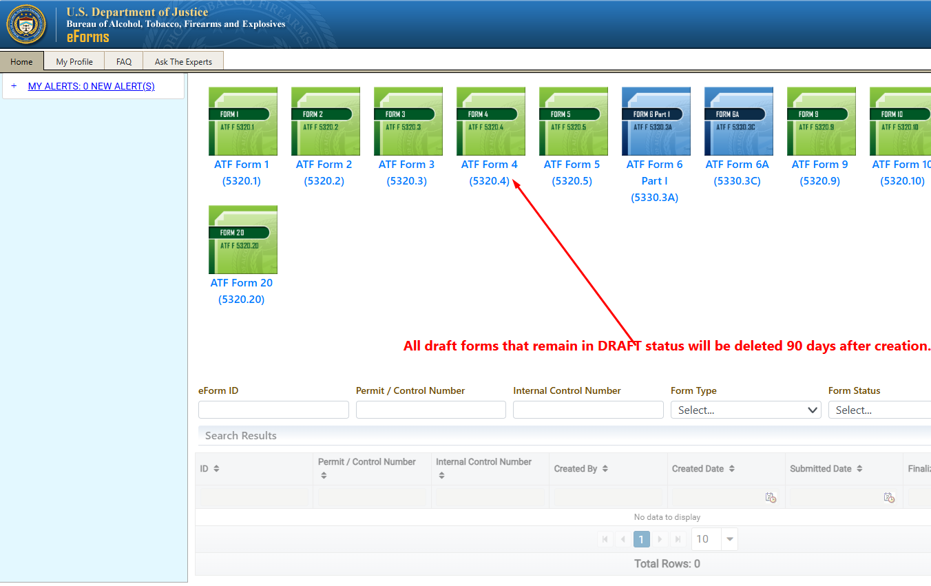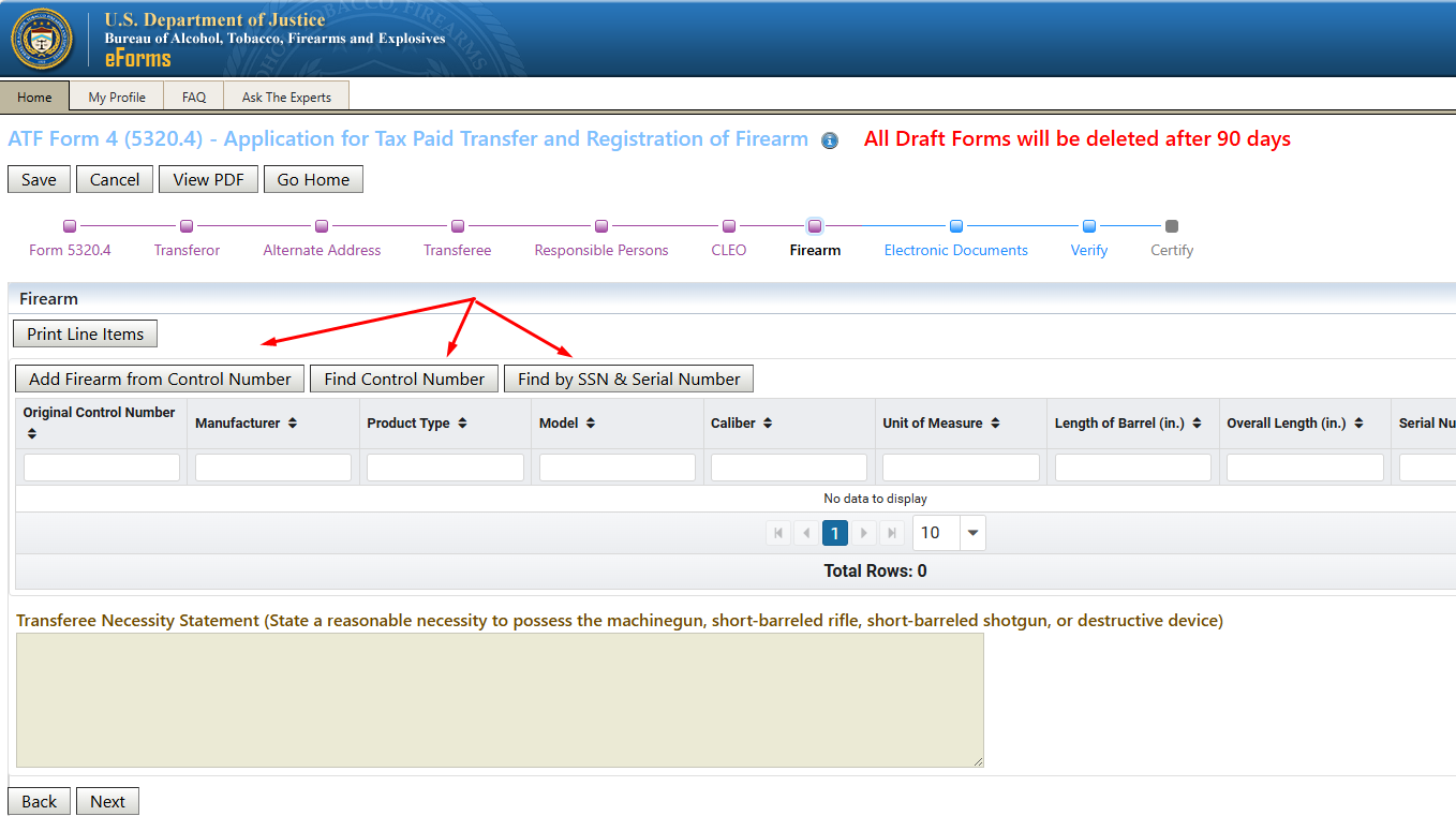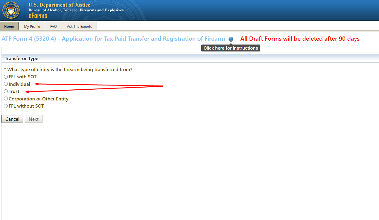Once you have confirmed how your name is entered in your profile, return to the Home screen and click on ATF Form 4 to start the transfer process: