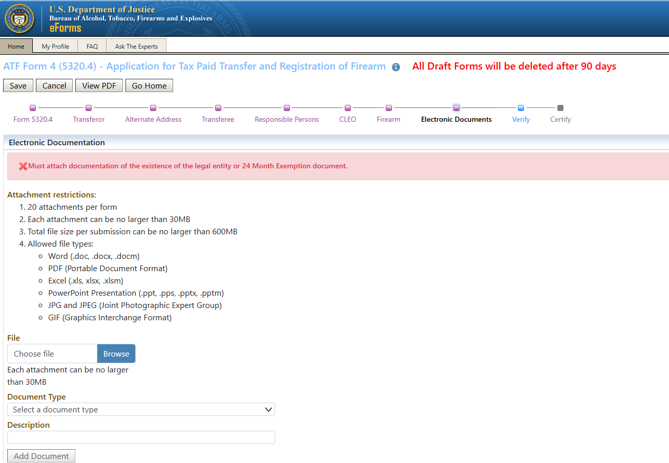 - IMPORTANT NOTE: The ATF will NOT accept electronic signatures on the Form 23. You must complete the form, print the first 2 pages, phsyically sign it, and then scan those 2 pages back into a single PDF file.