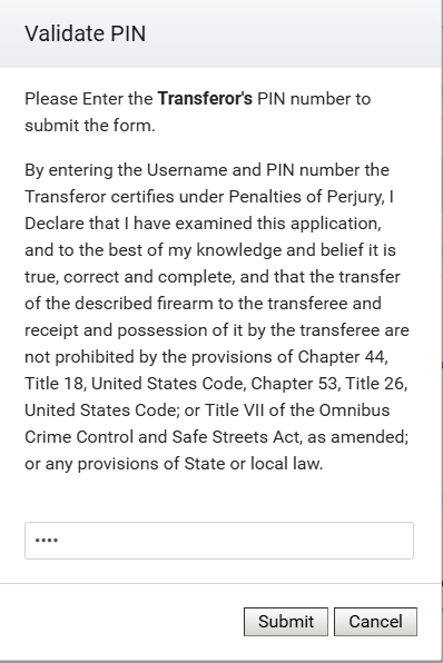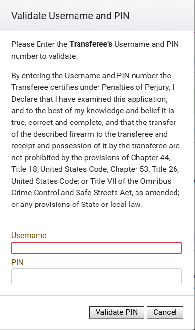 On the following popups you will enter your PIN (since you are the transferor) and then enter your Username and PIN again (since you are also the transferee).